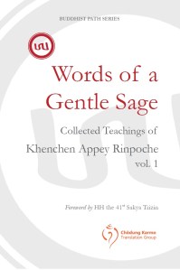 The first volume of the collection of teachings by Khenchen Appey Rinpoche includes a number of teachings on various subjects, ranging from pith instructions on mind training to teachings on Buddhist philosophy and short commentaries.